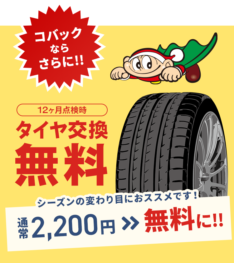 コバックなら、点検時のタイヤ交換が無料!!