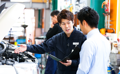 立ち合い説明とは、お客様に工場内へお入りいただき、整備士とお車の状態を見ながら整備内容をご説明させていただくものです。その際、部品に関しても整備士とご相談いただき、決めることが可能です。ご予算等のご相談もお気軽にご質問ください!